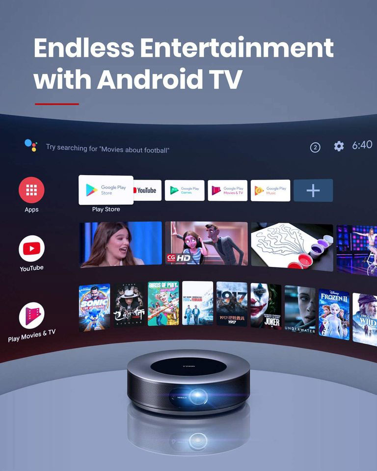 جهاز عرض الترفيه المنزلي Anker Nebula Cosmos Full HD 1080p السينما في منزلك: تتميز صورة Cosmos المشعة بدقة 1080 بكسل و900-ANSI-lumen بميزة HDR10 حتى تتمكن من مشاهدة الأفلام المفضلة والأحداث الرياضية والألعاب والمزيد كما لو كنت هناك شخصيًا. كل شيء راقي: يبث Cosmos حياة جديدة في أقراص DVD ومقاطع الفيديو القديمة وحتى البث التلفزيوني المباشر بفضل Hybrid Log Gamma (HLG). فهو يكتشف تلقائيًا متى تشاهد محتوى غير HDR ويقوم بترقية المحتوى في الوقت الفعلي بحيث يبدو كل ما تشاهده مثيرًا. صوت مثير: توفر مكبرات الصوت في Cosmos صوتًا حقيقيًا بزاوية 360 درجة بفضل تقنية Dolby Digital Plus. استمع لكل لحظة كما لو كنت في السينما نفسها. مناسب لأي منزل: اضبط حجم صورة كوزموس في لحظة بلمسة زر بسيطة عبر التكبير الرقمي المدمج. جميع التطبيقات: Android TV 9.0 هو بوابتك إلى عالم من الترفيه الرائع. قم بتنزيل Prime Video وYouTube وآلاف التطبيقات والأفلام والألعاب الأخرى والمزيد.
