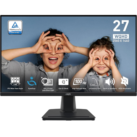 إم إس آي شاشة 27 بوصة IPS بدقة 2K معدل تحديث 100 هرتز زمن استجابة 1 مللي ثانية 2 × HDMI | 1 × DisplayPort مكبر صوت مدمج، قابلية التركيب على الحائط، معتمد من TÜV