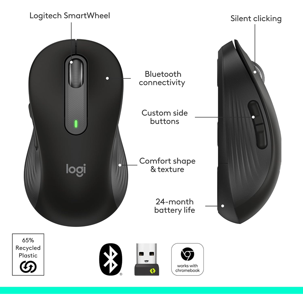 ماوس لوجيتك سيجنيتشر إم 650 إل لاسلكي بلوتوث - تقنية النقر الصامت (Silent Touch) - لون جرافيت