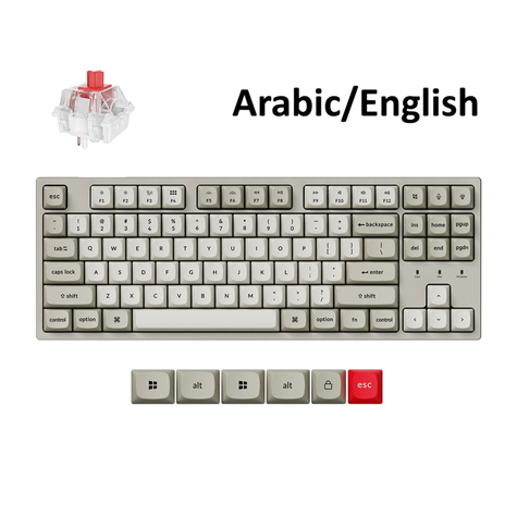 لوحة مفاتيح ألعاب سلكية قابلة للتخصيص KeyChron C1 Pro 8K TKL ميكانيكية بمفاتيح حمراء، C1PX-M1، أبيض – عربي/إنجليزي