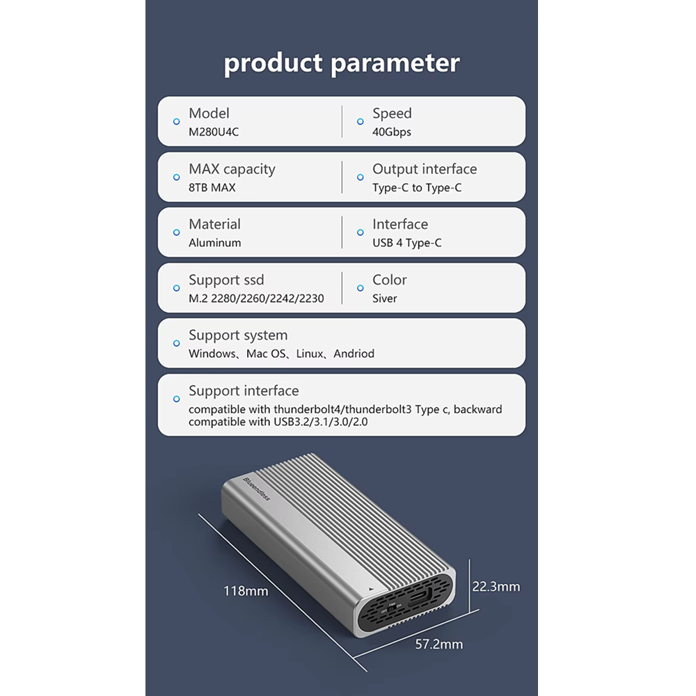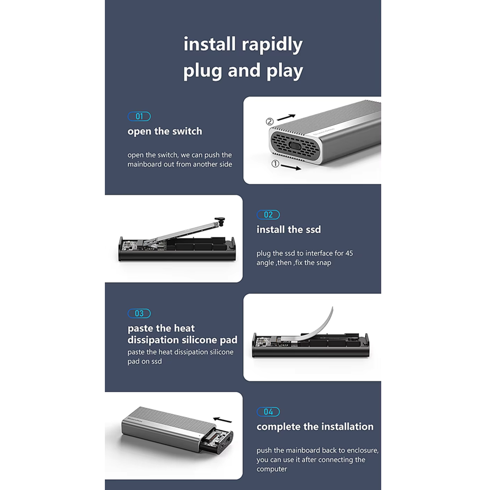 With USB4 technology, this SSD case provides lightning-fast data transfer speeds of up to 40Gbps.making file transfers and backups quick and efficient.