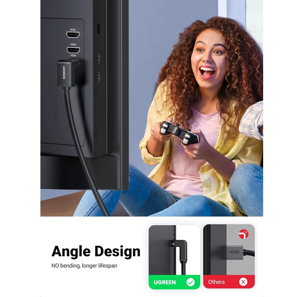- UGREEN 10173 HDMI Cable, Right Angle, 4K 60Hz, 90 Degree – 2m